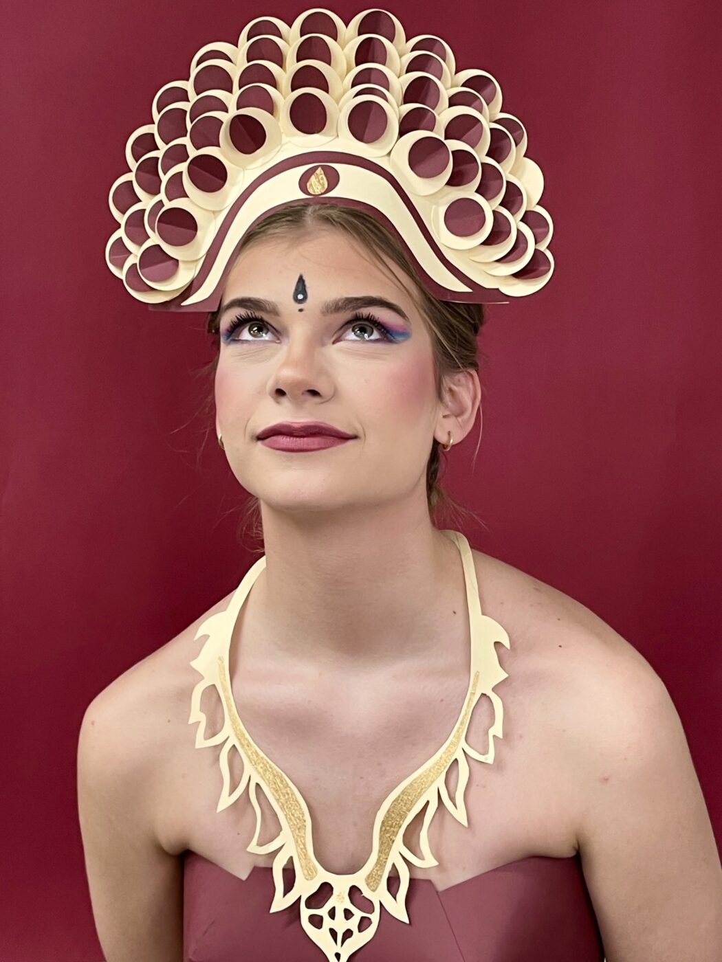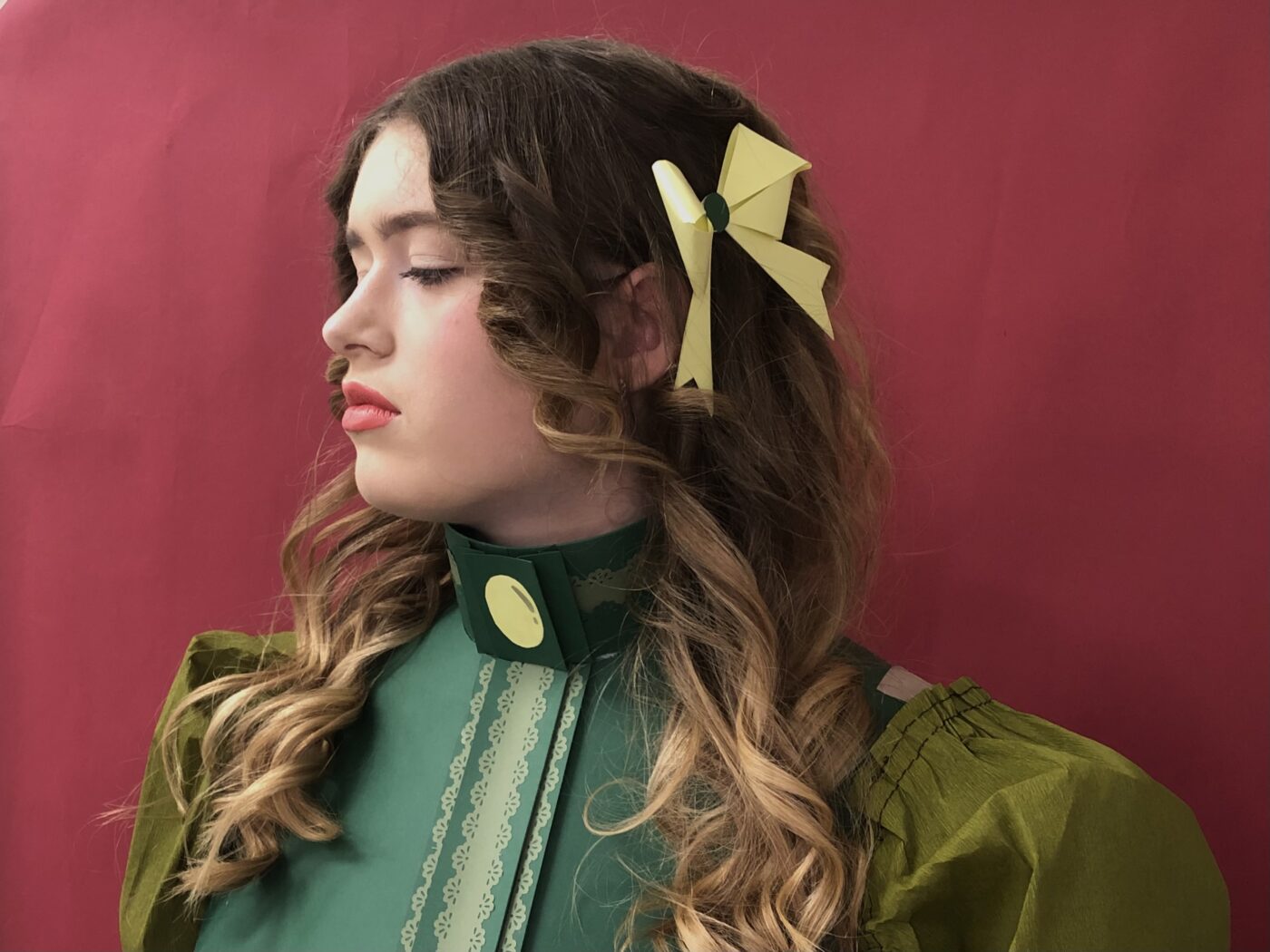 Création d’éléments de costumes et de parures en papier par des lycéennes de seconde du lycée professionnel Jean Geiler de Strasbourg se formant aux métiers de l’esthétique et de la coiffure. Ce projet avait pour but de mettre en valeur leur travail de maquillage et de coiffure lors des journées portes ouvertes de l’établissement en créant des silhouettes complètes. Les visiteurs ont pu voir les élèves à l’oeuvre en train de préparer les modèles avant la prise des photos.