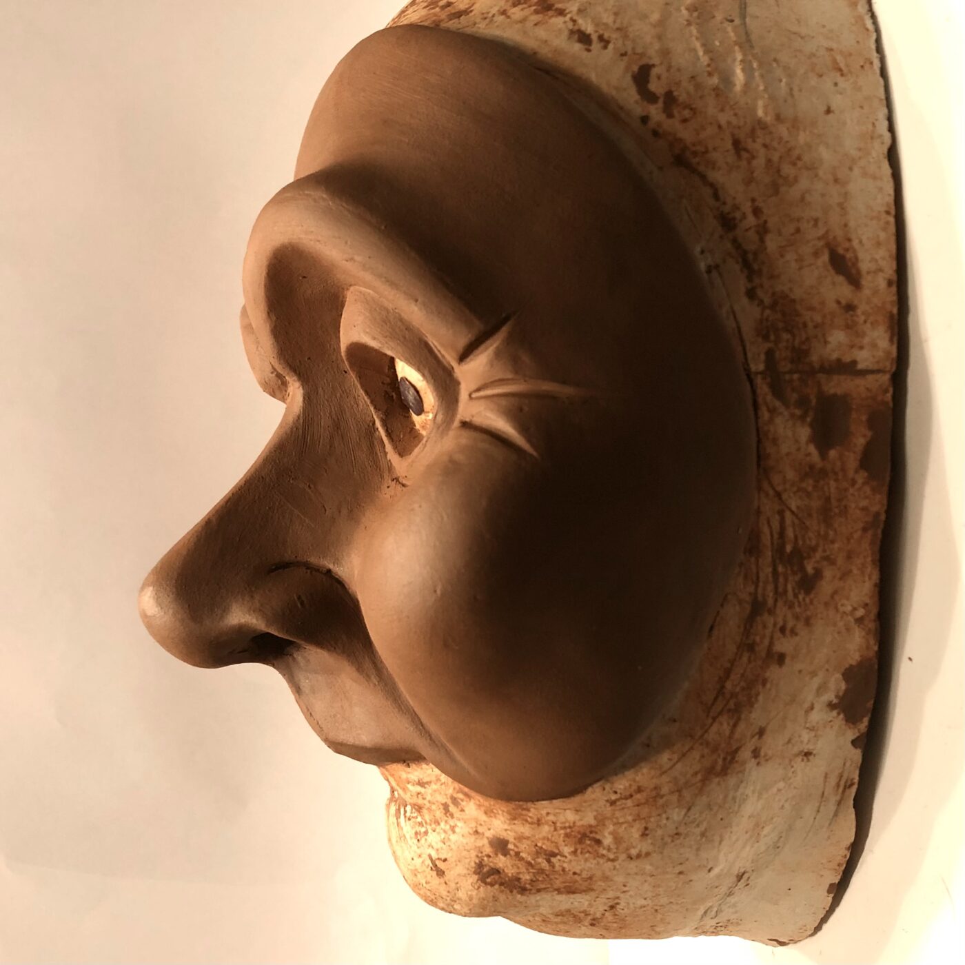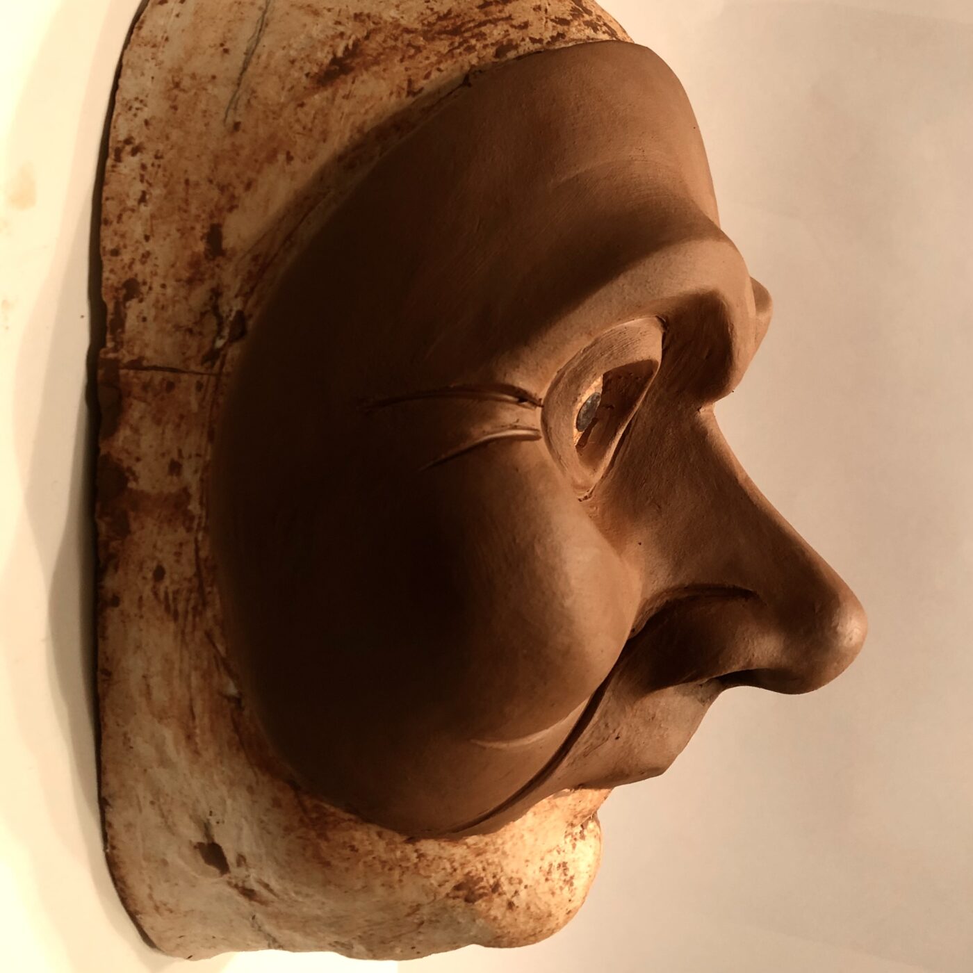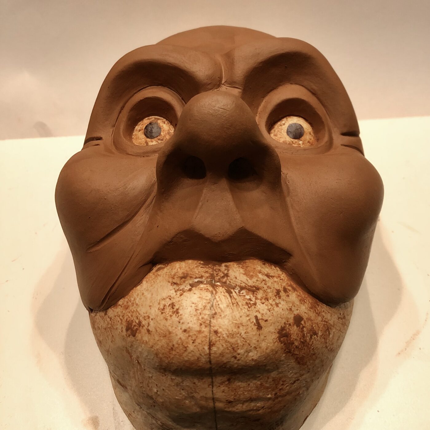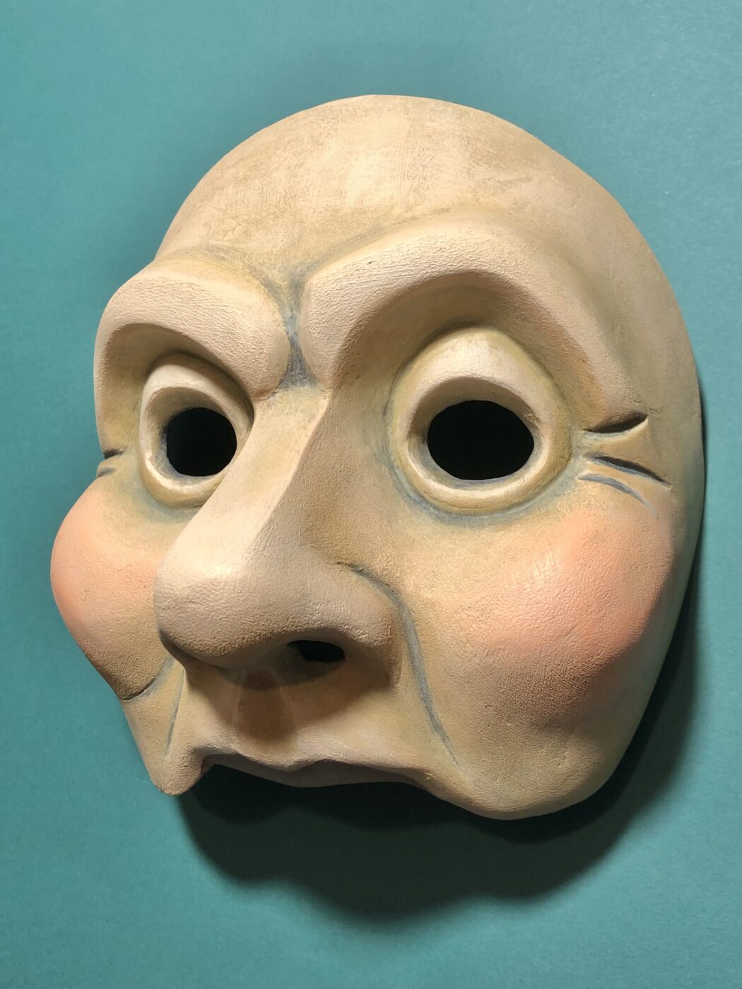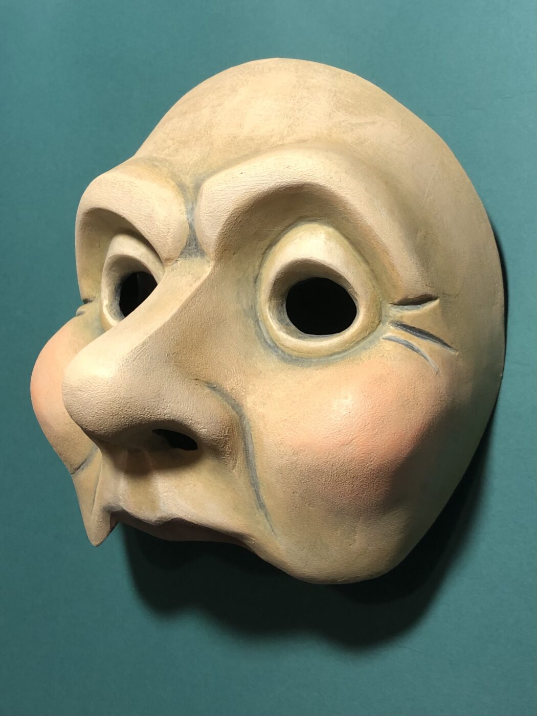 Masque en papier mâché de ce personnage haut en couleur à la fois casanier, radin, ronchon et renfermé sur lui-même. Il évoluera dans la pièce pour s’adoucir et finira pas apprécier Noël.